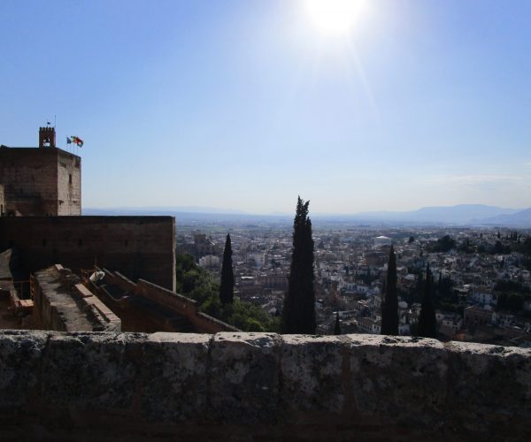 Spektakulär ist auch die Aussicht von der Alcazaba, der hohen Festung der Alhambra, von der aus man einen fast 360-Grad-Blick über die gesamte Umgebung hat. Bis hin zu den schneebedeckten Gipfeln der Sierra Nevada. Impresionante!